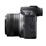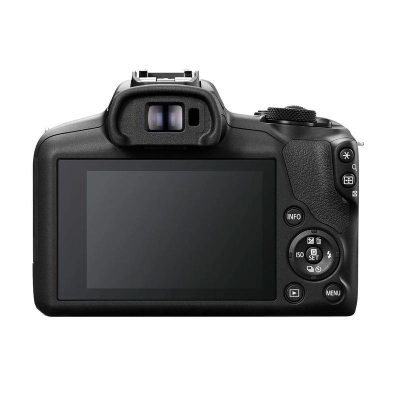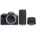 Package contains | Aparat foto EOS R100 Curea Capac pentru aparatul foto Incarcator de baterii LC-E17E Baterie LP-E17 Capacul acumulatorului Manual de utilizare Obiectiv Canon RF-S 18-45 mm, f/4.5-6.3 Obiectiv Canon RF 75-300 mm, f/4-5.6 Capace obiective fata/spate |