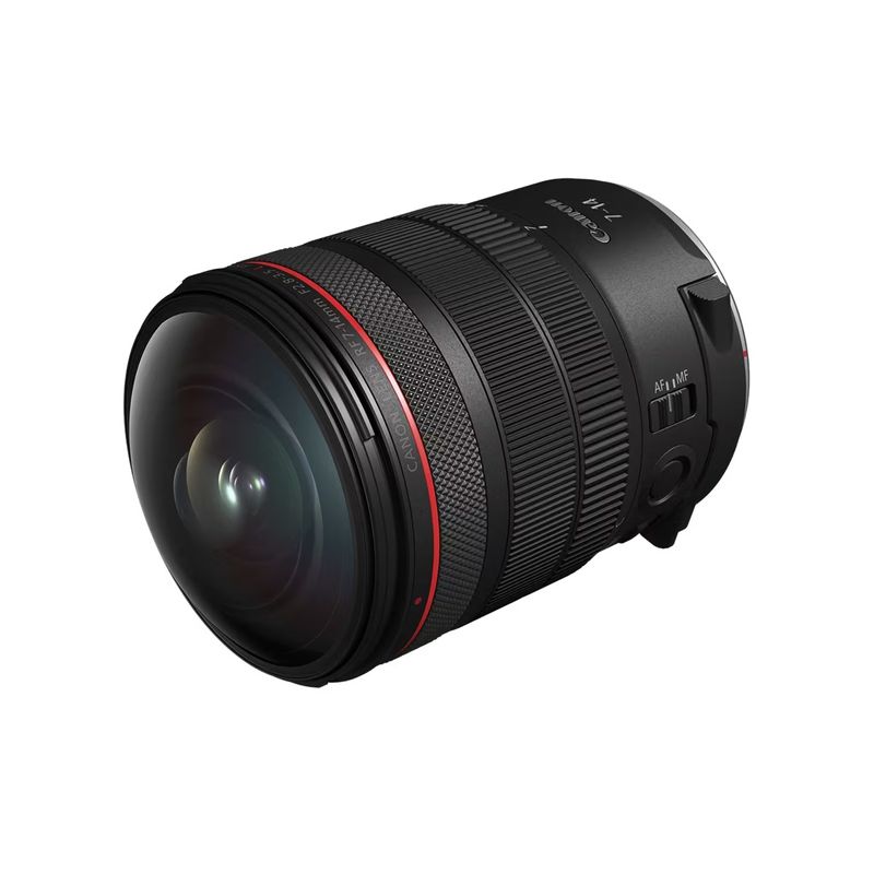 Package contains | Canon RF 7-14mm F2.8-3.5 L STM Fisheye Obiectiv Foto Mirrorless Montura RF Capac obiectiv Capac antipraf Parasolar Filtru clear drop-in A Husa moale |