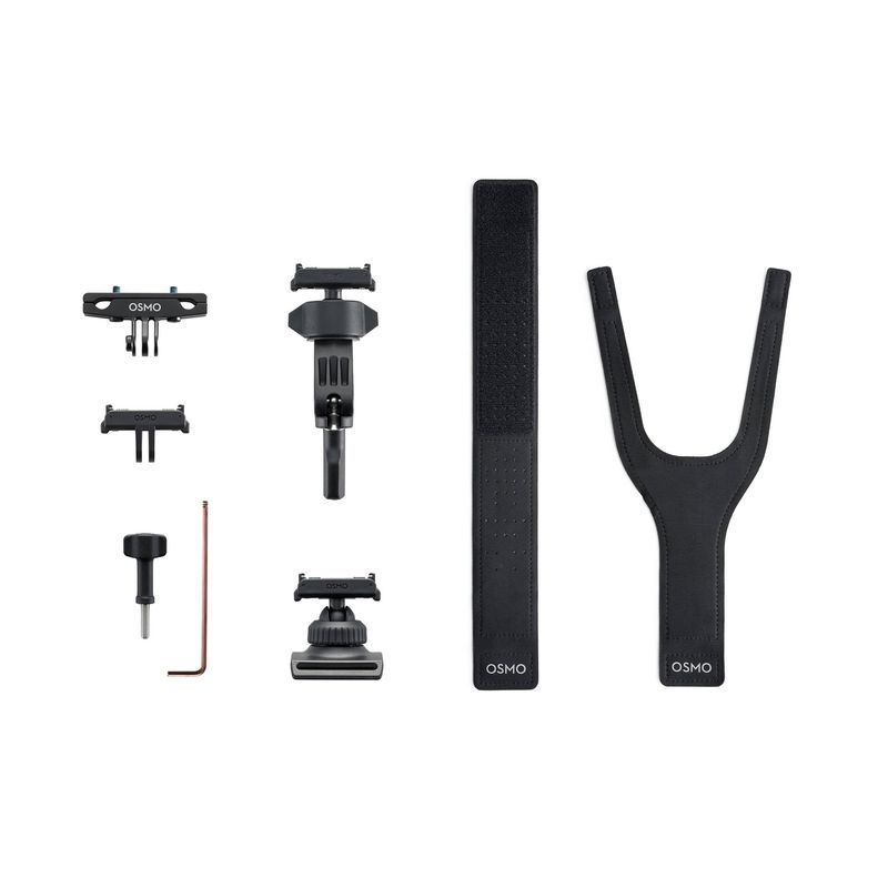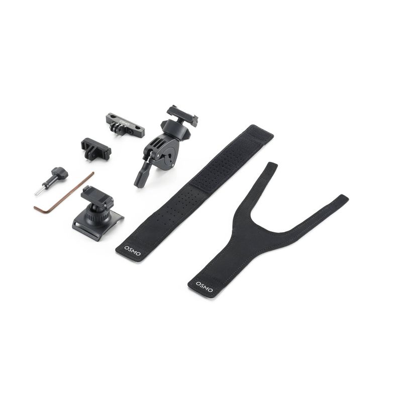 Package contains | 1 × Adaptor montura Osmo Dual-Direction Quick-Release 1 × Curea de mana 360° Osmo Action Dual-Direction 1 × Mini suport ghidon Osmo Action Dual-Direction 1 × Suport sine sa bicicleta Osmo Action 1 × Surub de blocare Osmo 1 × Cheie imbus Osmo Action |