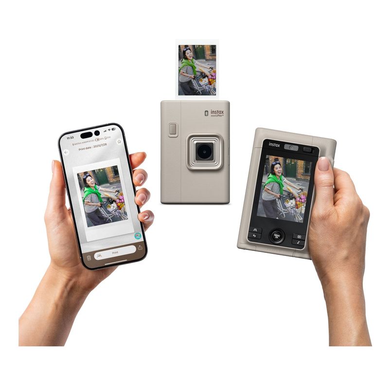 Package contains | Fujifilm Instax Mini Liplay+ Aparat Foto Instant Bej Cablu USB Type-C Curea de mana Ghid de pornire rapida |