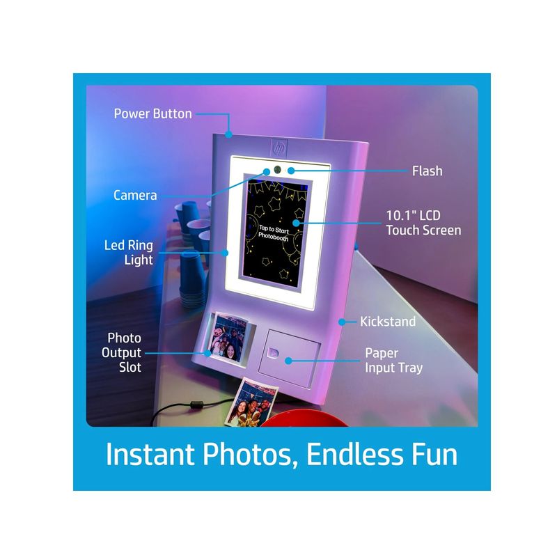 Package contains | HP Sprocket Photobooth 3x4 ZINK Zero Ink Starter 10-Pack Ghid de pornire rapida Adaptor de alimentare |