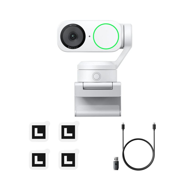 Package contains | 1x Insta360 Link 2 Arctic White 1x montura magnetica 4x Markere 1x cablu USB-C 1x Adaptor USB-C la USB-A |