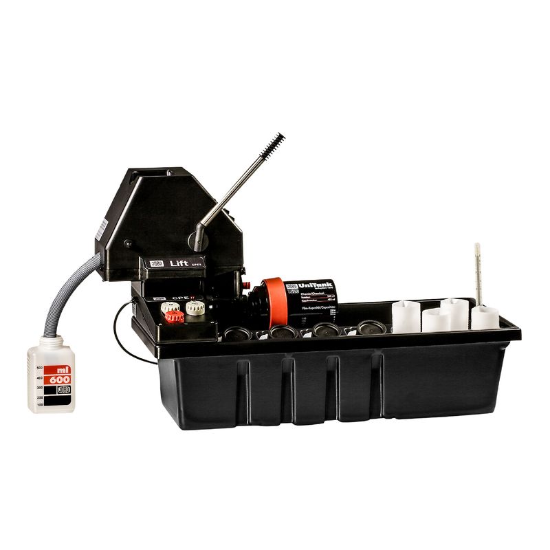 Package contains | Procesor JOBO CPE-3 Lift pentru manipulare usoara 4 sticle de 600 ml pentru solutiile chimice 4 cilindri de masurare de 260 ml 1 tanc JOBO 1520 cu spirala 1501 |