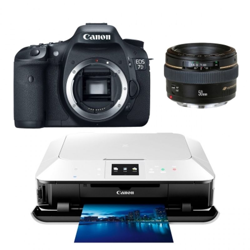 Kit promo Canon EOS 7D body + Bonus EF 50mm f/1.4 + Imprimanta Multifunctionala Pixma MG7150 Alba