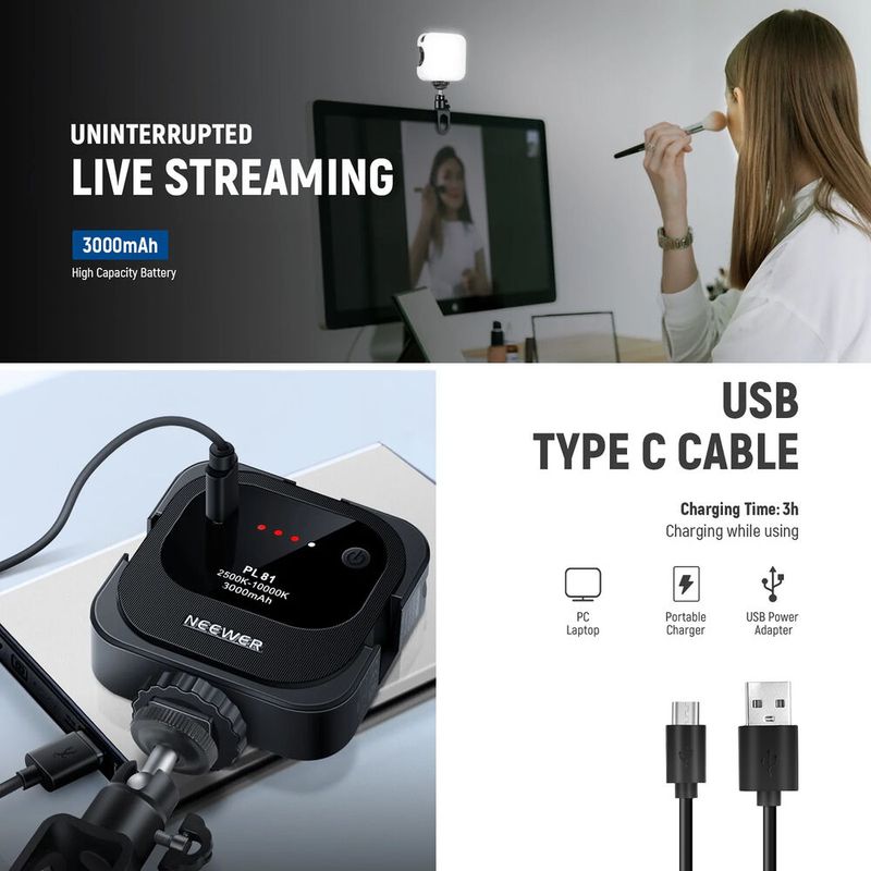 Neewer PL81 Lampa LED Bi-Color cu Patina Acumulator Incorporat