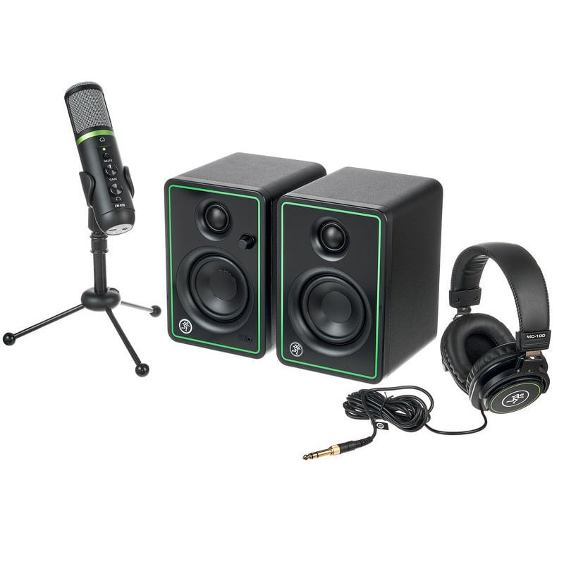 Package contains | 2 x Monitoare de studio active Mackie CR3-X 1 x Microfon Condenser USB Mackie EM-USB 1 x Casti Studio Mackie MC-150 |