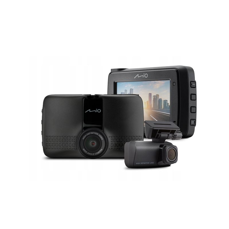 Package contains | MiVue 903WD Pro Card 128 GB Incarcator pentru masina Kit de alimentare permanenta Suport parbriz reglabil cu banda 3M Cablu de 8 metri pentru camera de spate 2 folii protectie parbriz Ghid de pornire rapida |