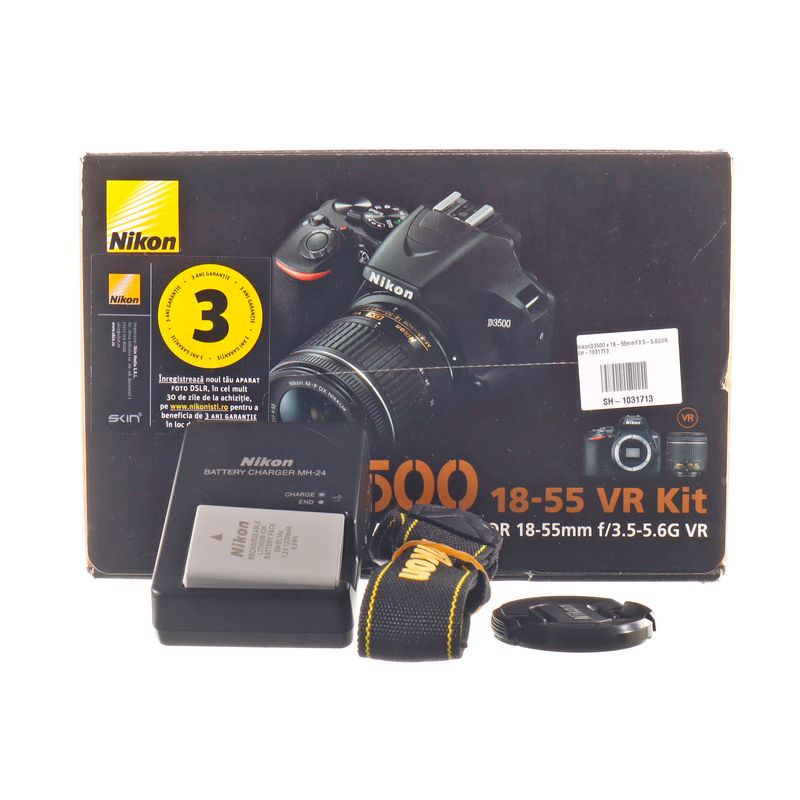 • ConsignatieAparate foto digitale (SH)Aparate foto dSLR (SH)Nikon D3500 + 18-55mm F3.5-5.6 G VR SH-1031713