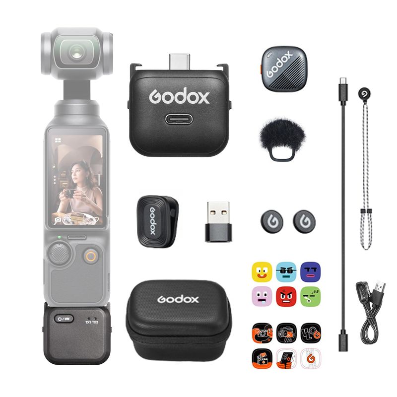 Package contains | Receptor wireless Godox Cube-OP3 RX (2.4 GHz) Transmitator/microfon Cube-S Paravant din blana 2 x magnet Cutie de depozitare Clips magnetic 12 x stickere pentru transmitator Snur de gat Cablu de incarcare magnetic Cablu adaptor USB-C mama la USB-C tata Adaptor USB-C la USB-A |