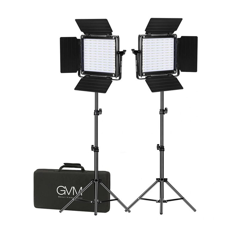 Package contains | 2 x Lampa 2 x Stativ de 2,1 m 2 x Difuzie si Grid 2 x Voleti 2 x Adaptoare si cabluri de alimentare (110-240V) Geanta de transport |