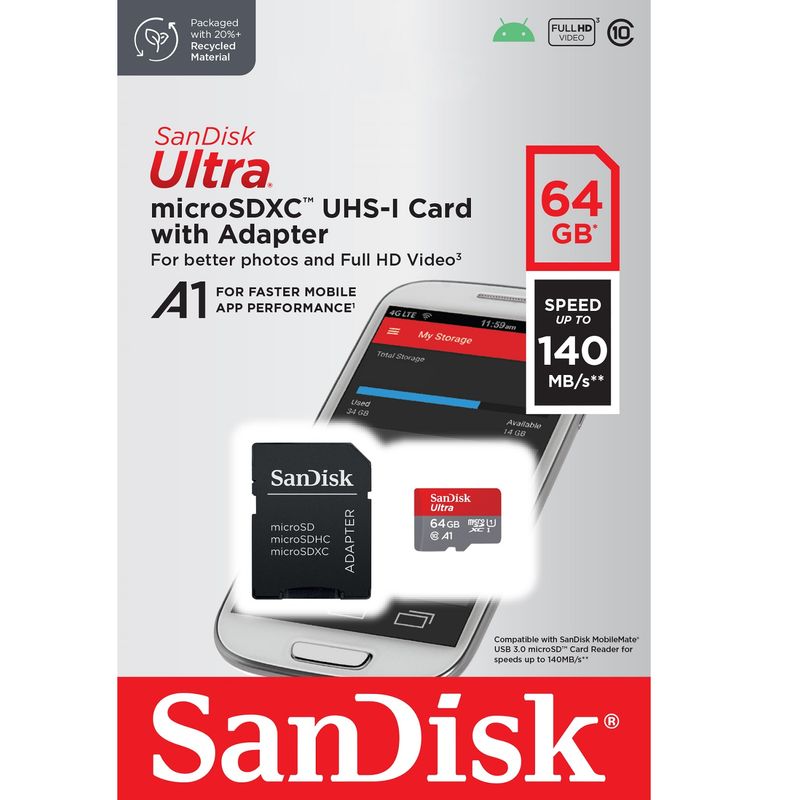 Package contains | SanDisk Ultra Card MicroSDXC 64GB Adaptor SD |