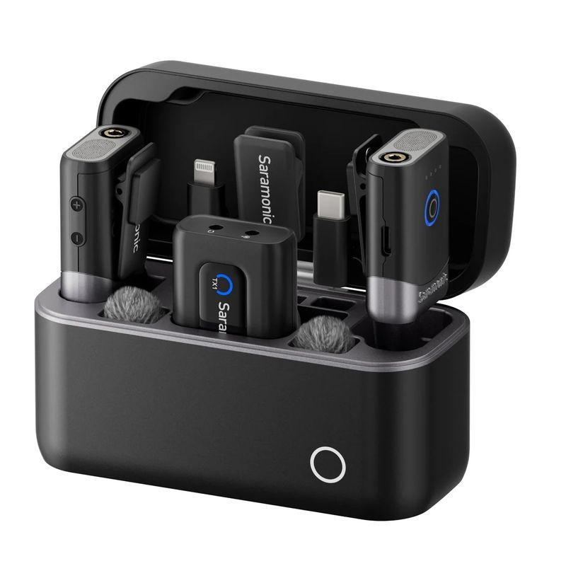 Package contains | 2x Transmiator 1x Receptor 1x Carcasa de incarcare 1x Cablu USB-C la USB-A 1x Cablu audio TRS 3.5 mm la TRS 1x Clips pentru curea 1x Adaptor USB-C 1x Adaptor Lightning 2x Paravant de blana 2x Magnet 1x Husa de transport |