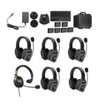 Package contains | Statie de baza Saramonic WiTalk-Hub (1.9 GHz) Casca cu fir single-ear Saramonic WiTalk-LBH pentru statia WiTalk-Hub 5 x casti wireless dual-ear WiTalk-DRH cu intercom full-duplex (1.9 GHz) 6 x baterii reincarcabile Li-ion WITALK-BP (3.7V, 1200mAh) Incarcator pentru 10 baterii Adaptor de alimentare Carcasa rigida etansa cu sistem de blocare |