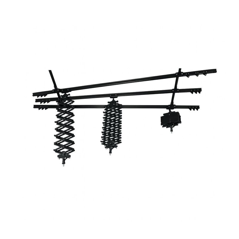 Package contains | 3 x pantograf pentru sina de tavan 2 m 6 x carucior dublu culisant cu frane 3 x sina dubla - 3,0 m 2 x sina simpla - 3,0 m 6 x suport pentru prindere pe tavan |