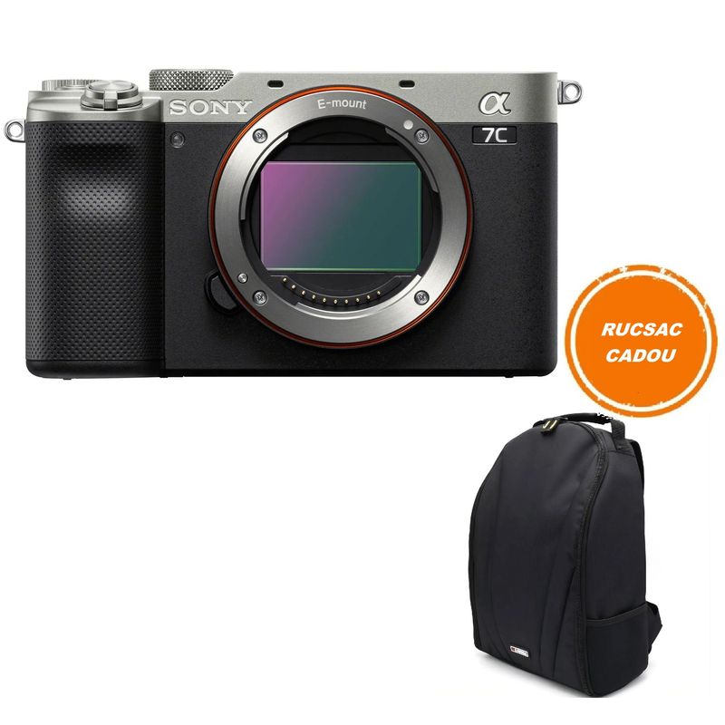 Package contains | Sony Alpha 7 C Body Silver Acumulator reincarcabil Li-ion NP-FZ100 Curea de umar Capac body |