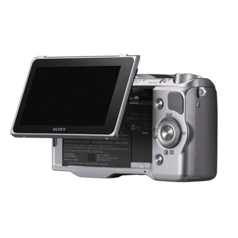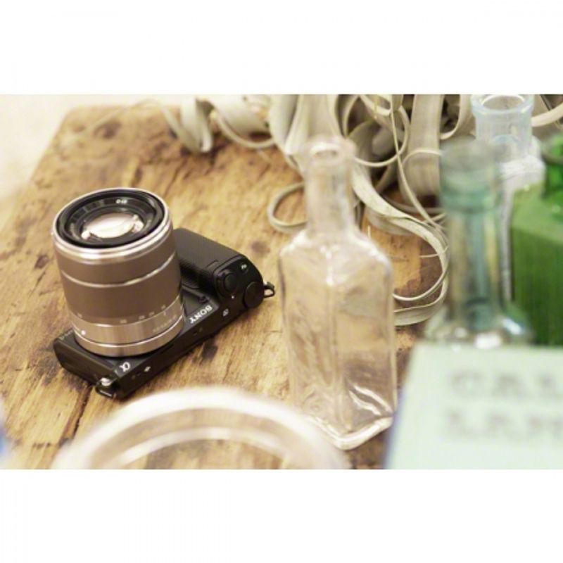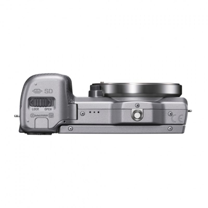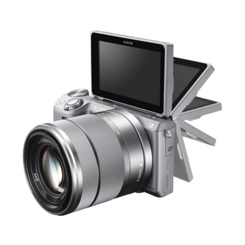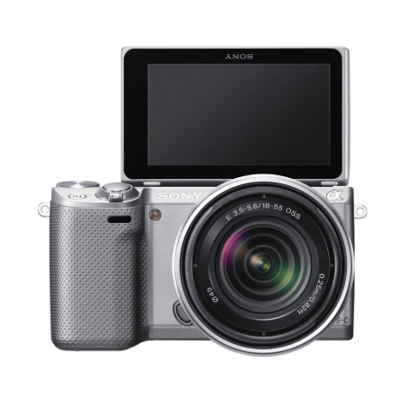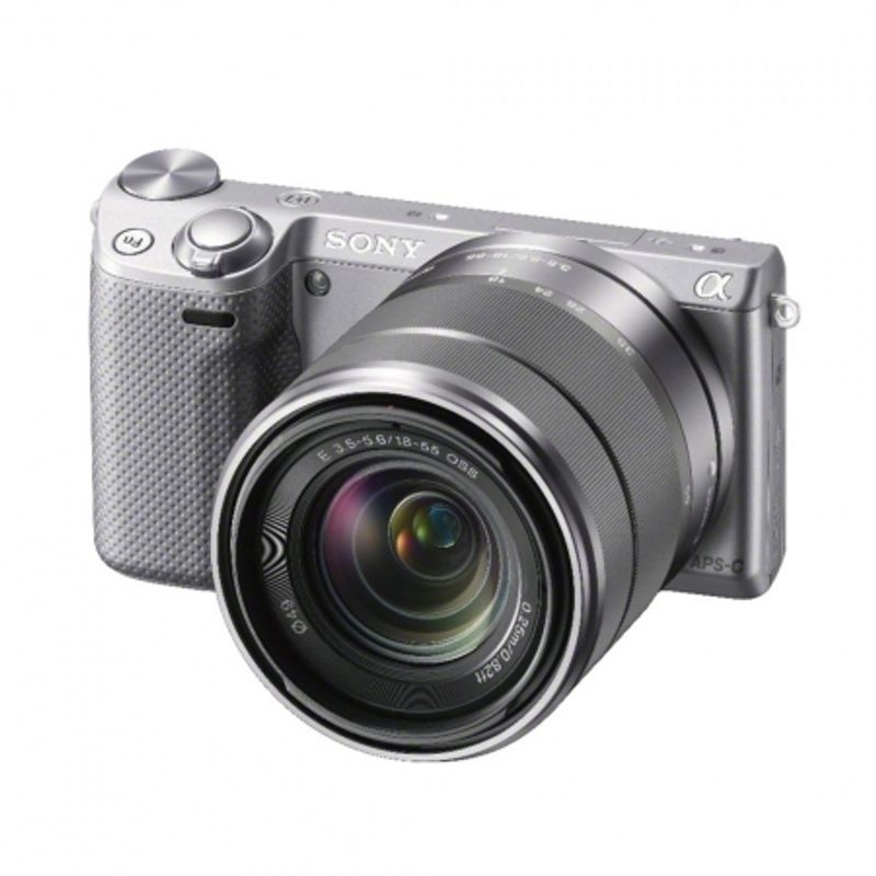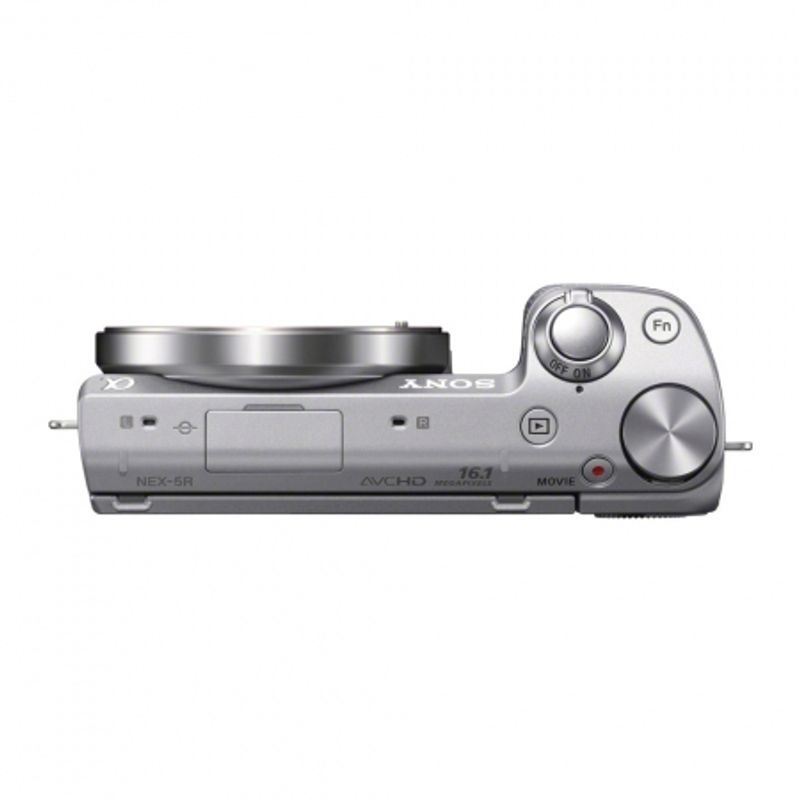 Package contains | • Sony NEX-5R body argintiu • Obiectiv SEL 18-55mm f/3.5-5.6 argintiu • Capac obiectiv fata • Capac obiectiv spate • Acumulator NP-FW50 Li-ion (1080mAh) • Adaptor AC-UB10 • Blit • Husa blit • Curea de umar • Capac body • Cablu micro USB • CD-ROM |