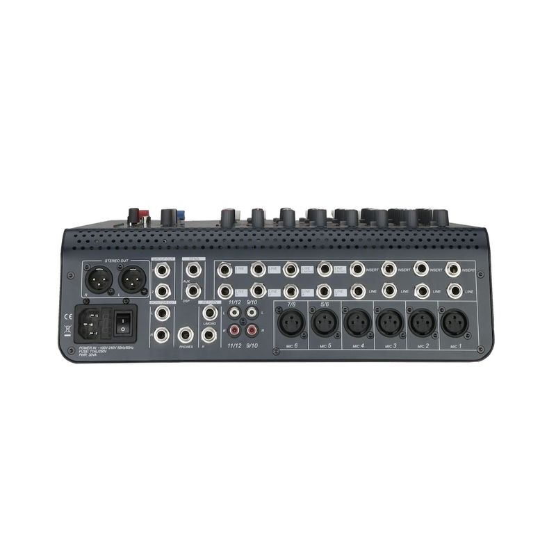 Package contains | Mixer audio compact C6-12 cu 12 canale Cablu de alimentare CA Ghid de utilizare |