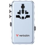 Verbatim Adaptor Universal GaN III 70W cu 2 Cabluri Retractabile USB-C PD 3.0 QC4+ 1 x USB-C 1 x USB-A Albastru