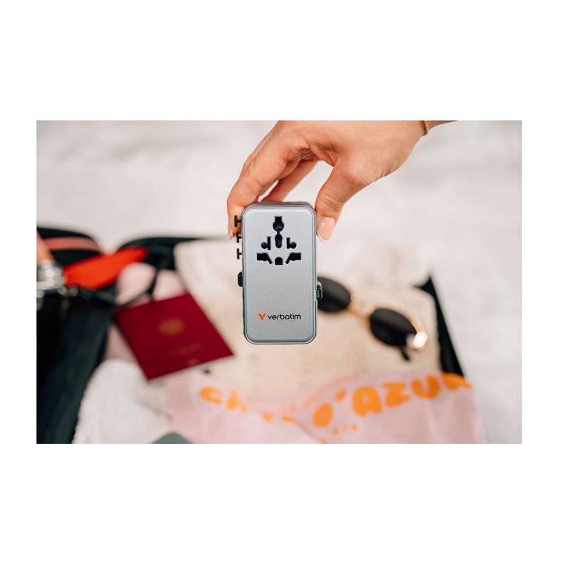 Verbatim Charge 'n' Travel 70W GaN III – adaptor universal de calatorie cu cabluri duble USB-C retractabile
