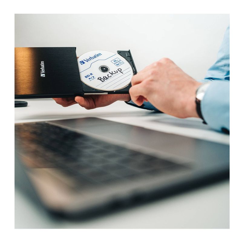 Package contains | Verbatim Slimline Unitate Optica Externa Ultra HD 4K USB 3.1 Negru Cablu USB-C la USB-A Adaptor USB-A la USB-C Software Nero Burn & Archive pe CD Manual pe CD Ghid de instalare rapida Include gratuit un disc Blu-ray Verbatim de 25 GB |