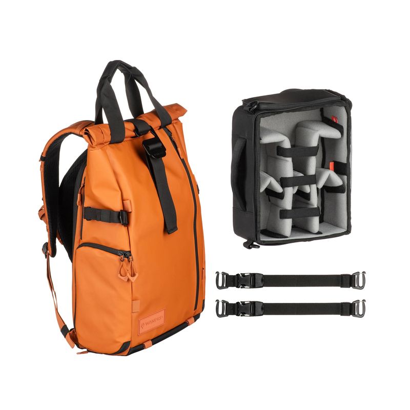 Package contains | WANDRD PRVKE Rucsac Foto 31L Portocaliu (Sedona Orange) WANDRD PRVKE Camera Cube Essential+ (8,7L) 2 separatoare lungi 3 separatoare scurte Curele accesorii (negre) |