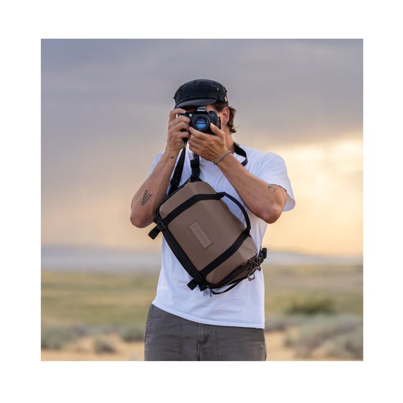 Package contains | WANDRD ROGUE Sling Geanta Foto 9L Brun Roscat (Atacama Clay) Curea de umar 2 x separator cu prindere hook & loop 2 x curea elastica de fixare |